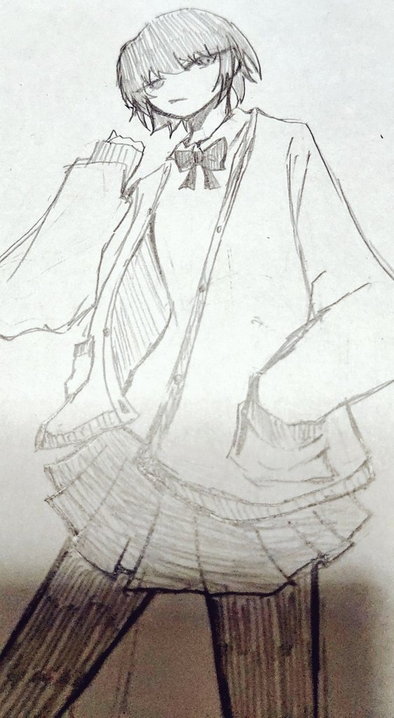 買った緑のペンで下書きしたやつ(雑) #イラスト好きさんと繋がりたい #イラスト #セーラー服 #手の雑さ