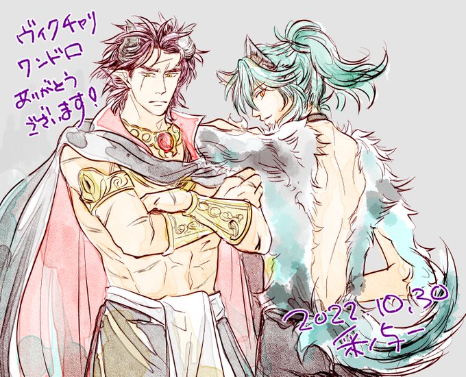 ワンドロむずかし~😂😂😂 めちゃくちゃ楽しかったです!ありがとうございます! ㊗ヴィクチャリワンドロ🎉 お題「ハロウィン🎃」で肉体派魔王とセクシー狼男描きました! #ヴィクチャリ深夜の60分一本勝負
