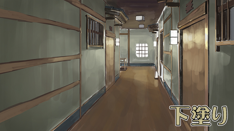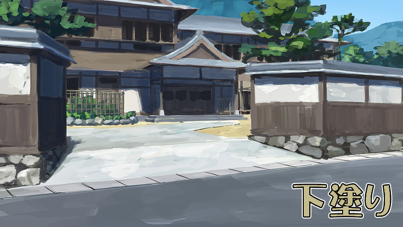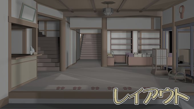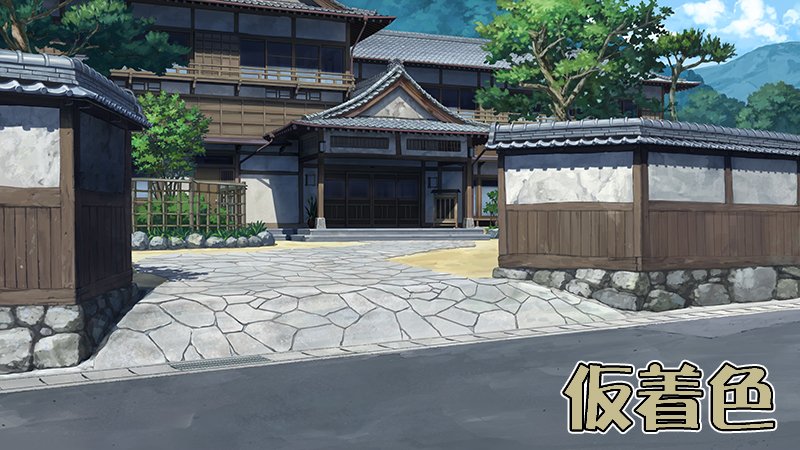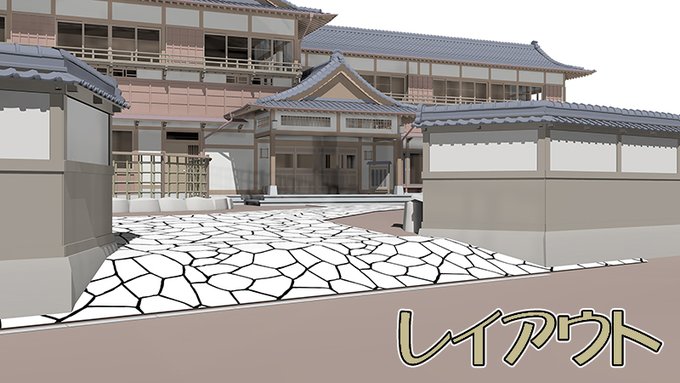 老舗旅館の背景素材企画、外観。仮着色まで完了。 作業の進め方はいつも、レイアウト→下塗り→仮着色→仕上げの順で行ってます。 完成まであと少し。 twitter.com/saigakai/statu…