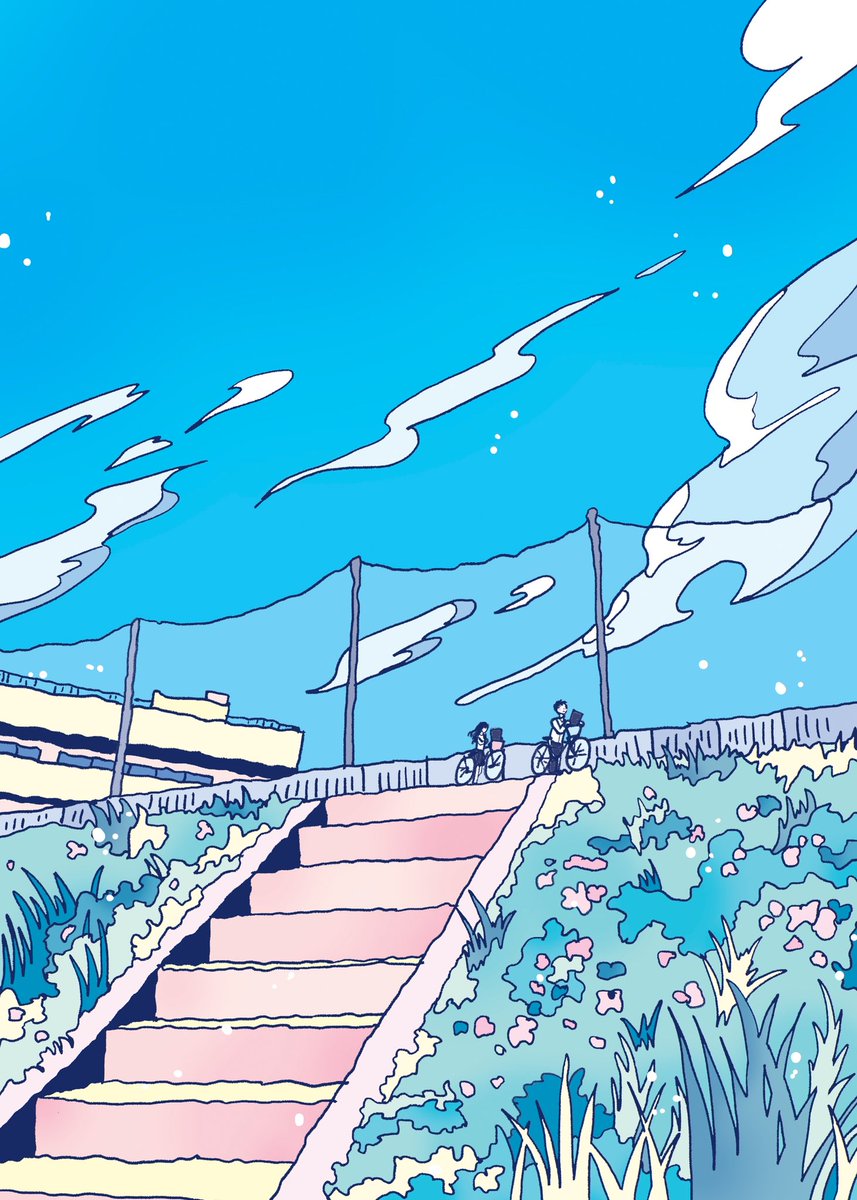 *お仕事* “愛だの恋だのラブソングを歌い続けるバンド”「moon drop」様の、グッズ用イラストを担当しました。 爽やかで甘酸っぱい曲に面映い気持ちになりながら、河川敷を駆け抜ける高校生カップルを描きました🚲🌙 青春に心揺らす方におすすめです。 moondrop-official.com