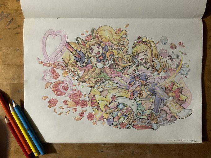 20 204 お子ちゃま色鉛筆と じゃがりこのフタ置きました。 (超有名画伯のパロディー。 怒られるかも🙄。) #イラスト #モンスト #ピリカ 22/08/07 00:14