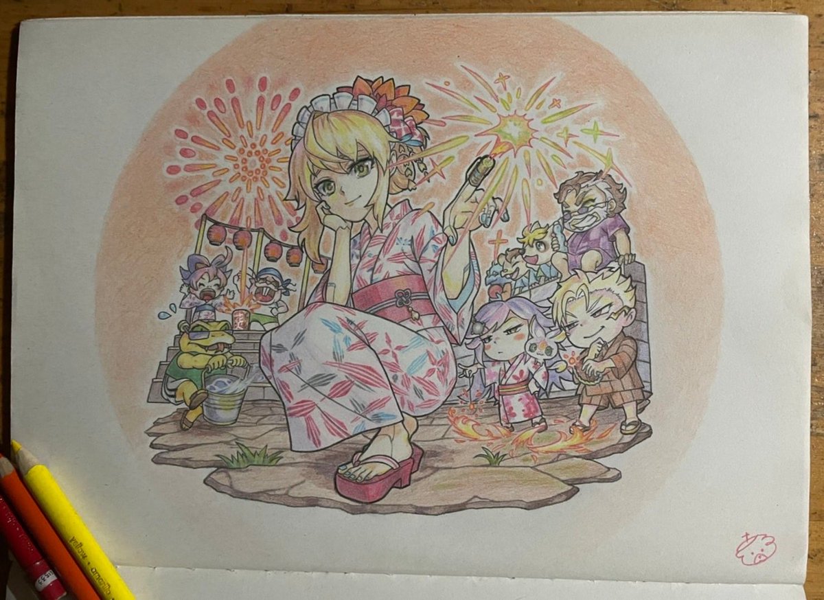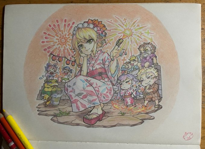 7 52 ぶたぶたさんのリクエストの 🎆夜空彩どる夏の相棒 ワトソンα♥️ #イラスト #モンスト #ワトソンα 22/07/02 00:02