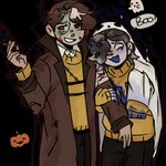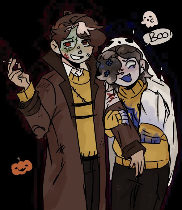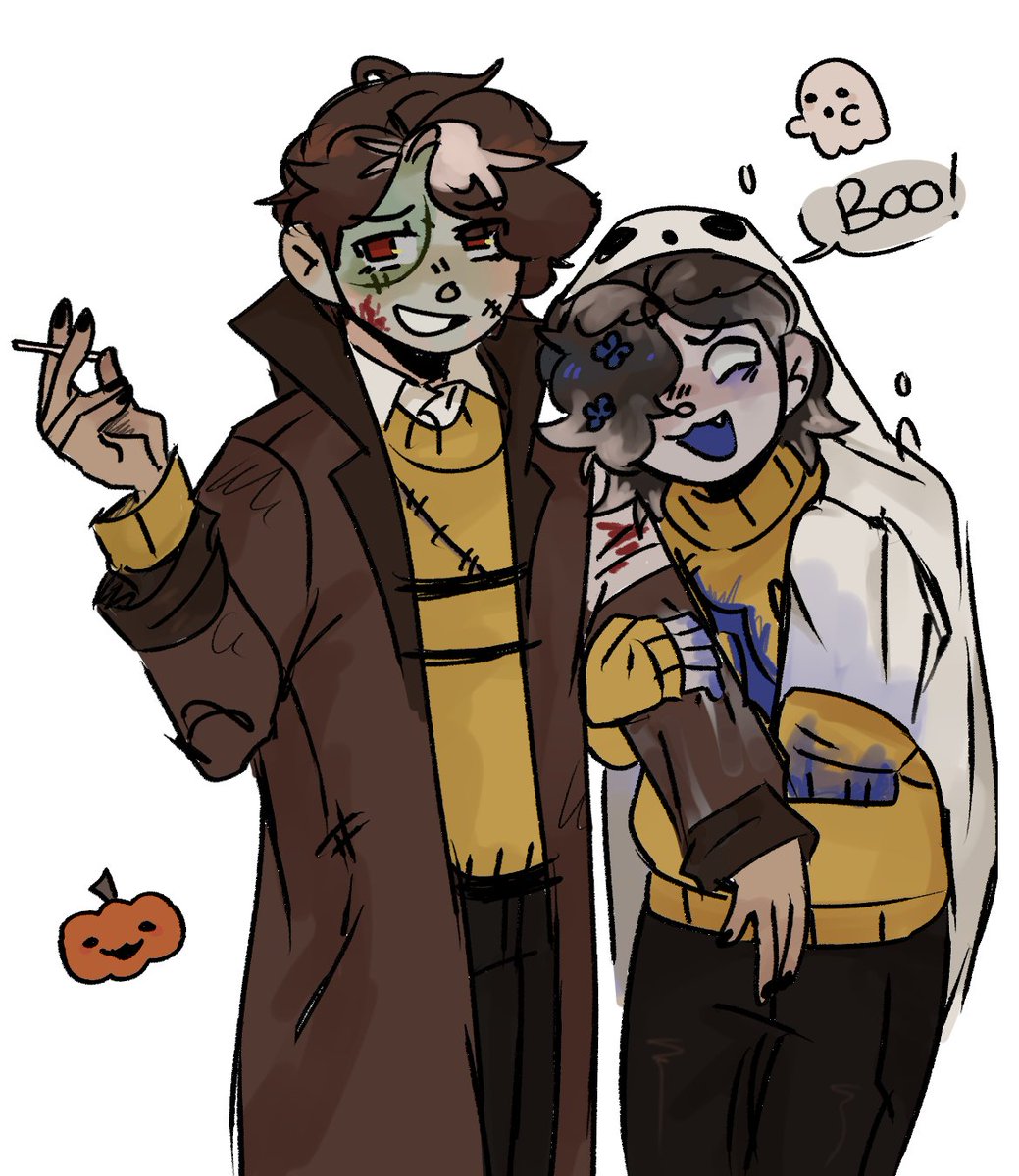 wanted to draw a little thing for halloween🐱 ghost and his zombi counterpart (its makeup) for spookyday #dreamsmpfanart #wilbursootfanart #ghostburfanart