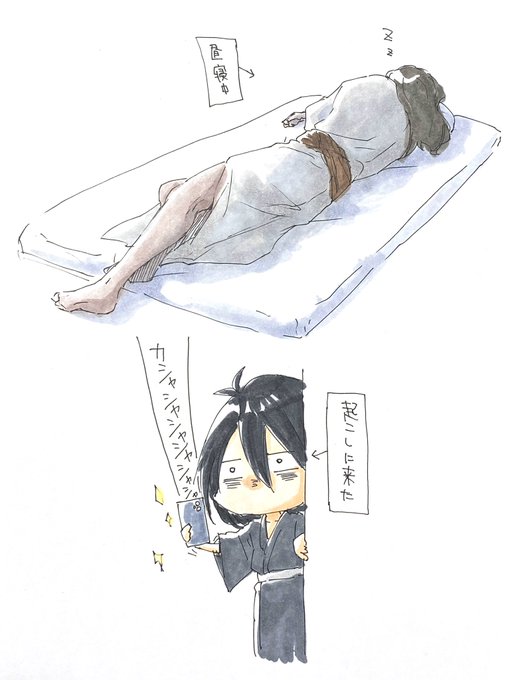 複製先生の膝裏を無性に描きたかったので、 複製先生が昼寝する姿を無言でパシャる血煙の落書き…
