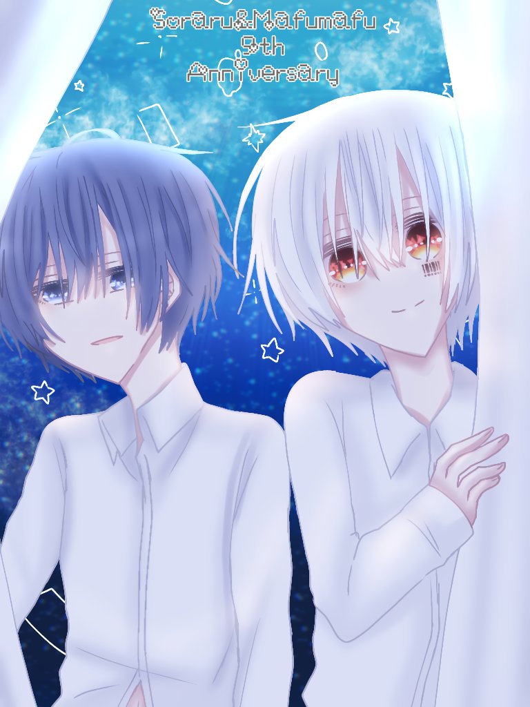 62 210 8周年おめでとうございます。 これからもお二人を取り巻く世界が幸せでありますように #そらまふ8周年 #そらまふの日 #そらるの絵 #まふあーと 22/03/07 00:01