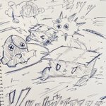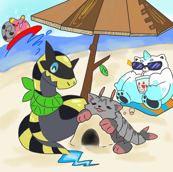 1 6 #絵東ライフ 絆創膏のトロピウス(ライフ産)を描いていただけのはずなんだ……… いつの間にか伊豆のマンタインが壮大な計画を始めようとしていた 23/07/17 21:06