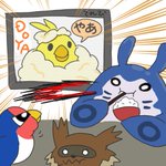 #絵東ライフ 伊豆のマンタイン宿より、テレビ電話にて。 君たちは…オオスバメお兄ちゃんみたいには…なれないんやで…… あっキノガッサおめでとうございます!