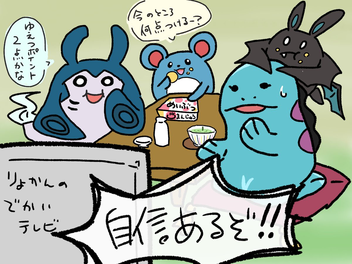 6 15 #絵東ライフ ヌオ美さん「せっかくだしホウエンから帰る延長で伊豆にでも行こうかしらね。マンタインさんたちもいるらしいわよ。温泉も入りたいわね!」 クロバット「ッス。」 23/06/09 23:34