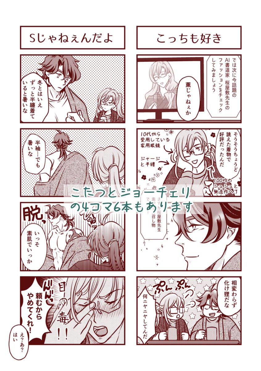 【2/12 OTG ジョーチェリ新刊】 「こたつはじめました」A5/P28/全年齢 ▶︎とらのあな通販 ec.toranoana.jp/joshi_r/ec/ite… ▶︎pixivサンプル pixiv.net/member_illust_… こたつを持ち込んで好き勝手する🌸とちょろ次郎のお話&4コマ6本 ▼サンプル(1/2)