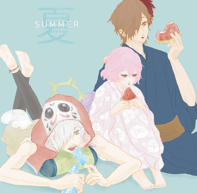 2 20 水分補給。 #だるまいずごっほ #Arisakaaa #なるせかいたよ 妄想浴衣。👼はジンベイ似合いそう。とか。 23/06/29 00:52