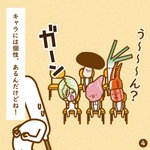 『きのこ達、ライバルの名前に敏感・・・!』 永遠に決着がつきそうにない「きのこたけのこ論争」。 あなたはどっちが好きですか? (鍋界だと圧倒的にきのこ優勢だと思うのですがどうでしょう?) #きのこたけのこ戦争 #漫画が読めるハッシュタグ #立春 #イラスト