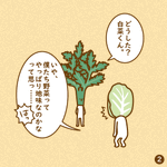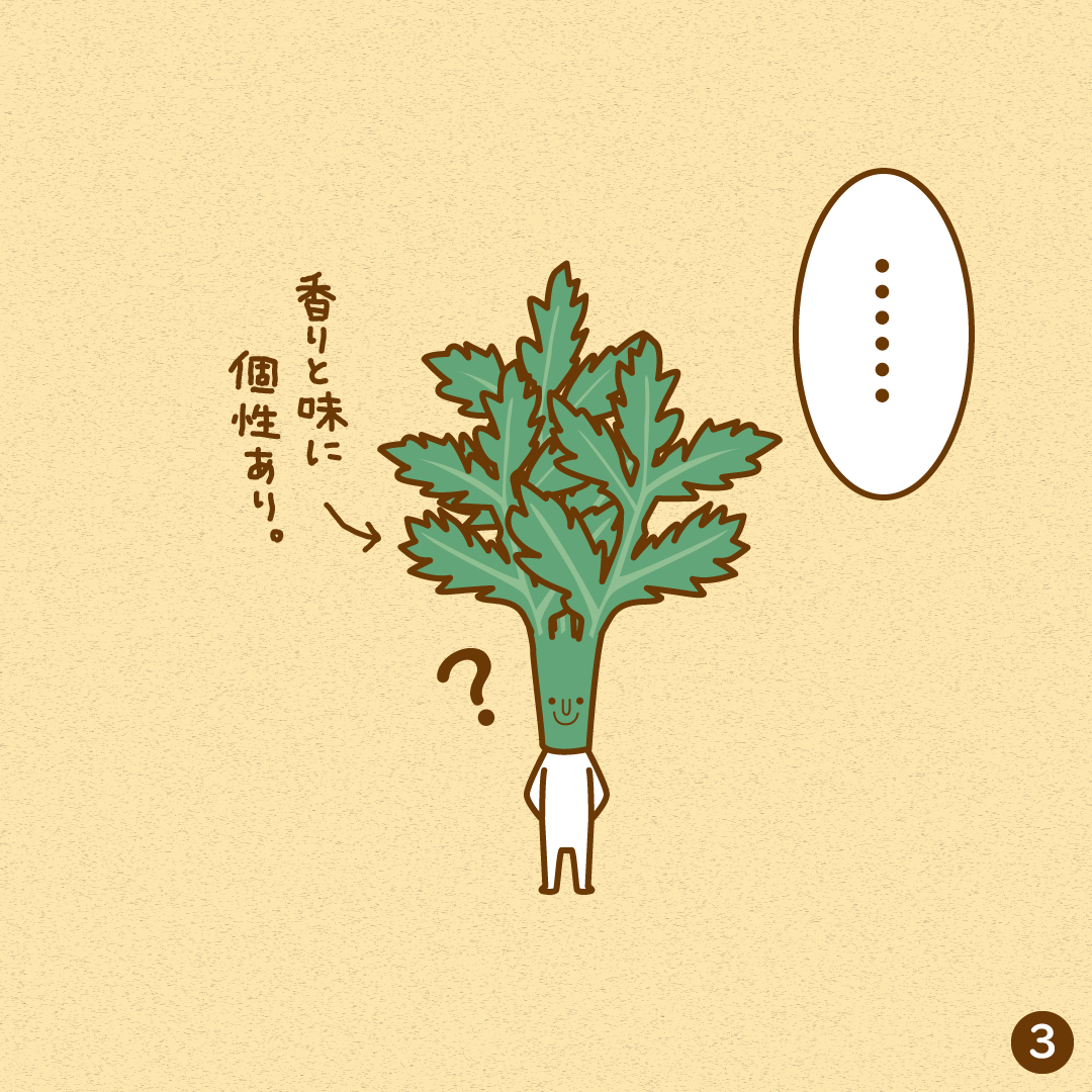 『なべっちゃん サイキョー食材 候補生ファイル』 N0.012 春菊くん みんなを優しく見つめるお兄さん。争い事が嫌いでふんわりした雰囲気と温かい笑顔の持ち主。 実は人生の苦みを知るゆえの深みがあり、みんなを俯瞰で見られる頼もしい存在。 #漫画が読めるハッシュタグ #キャラ #プロフィール