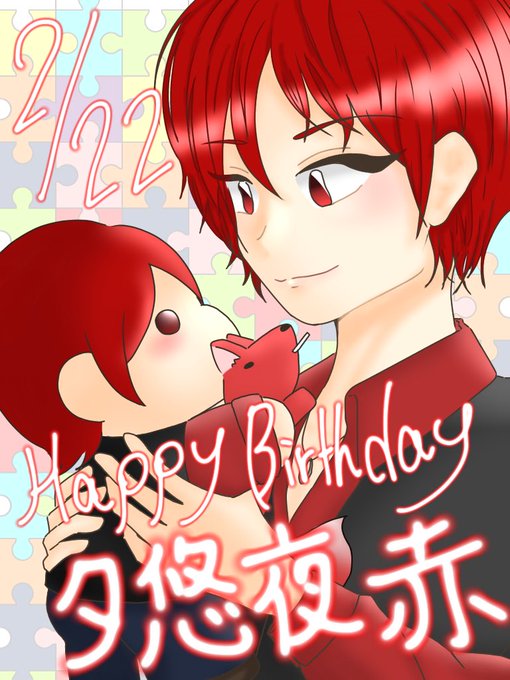 0 4 お誕生日おめでとうございます👏🎉🎁🎊🎂🍖 #夕悠アート #夕悠夜赤誕生祭2023 23/02/22 01:20