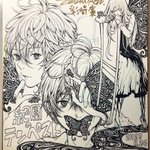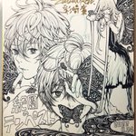 今までの色紙とは毛色をガラッと変えて描いてみました。てか逆にこっちの方が作品色に合った物なんですが。。。 こちらも色紙プレゼントに回します。 応募方法は今まで同様、フォロー&ツイートをRTでご応募下さい🐥🐥 偽アカウントからのDMにはご注意下さい。
