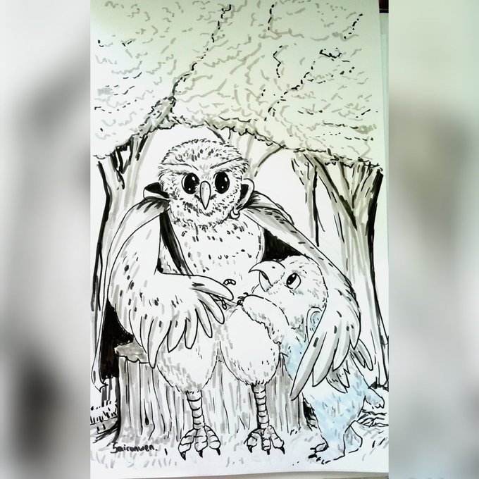 A quick sketch of my druid Uhuhdalia and a little owlbear cub #cute #dndart #DnDcharacter #fantasyart #DnD