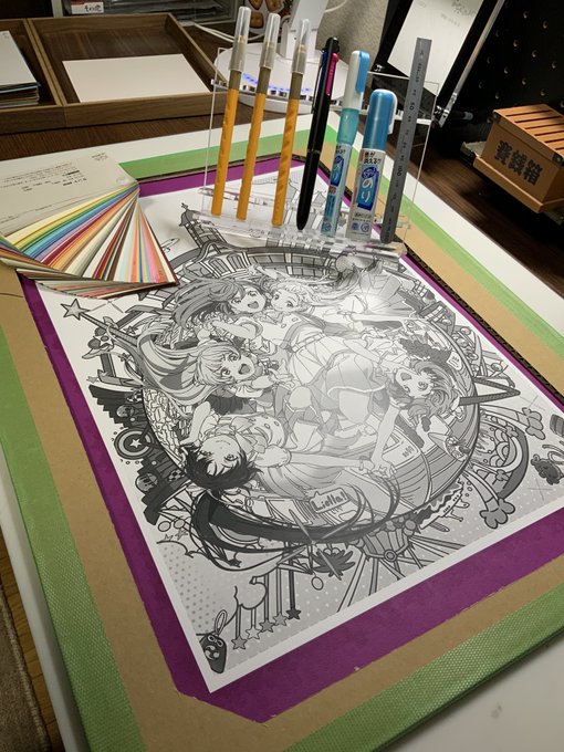 Liella!2ndキービジュアル切り絵、完成です❗️なんとか名古屋公演Day1までに間に合わせることができました。とにかく細かくてポップでカラフルな、カラー切り絵の良さを出せた傑作が出来たと思っています。じっっっくりご覧になってください。 #lovelive_superstar #Liella #切り絵