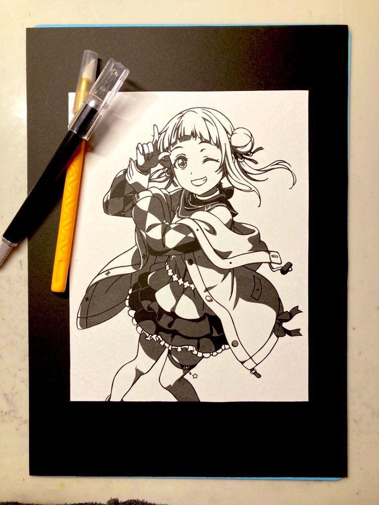 100円ショップの商品のみで切り絵を作る企画ということで千砂都ちゃんを「剥がし」と呼ばれる技法で切ってみました 普段と勝手が違い大変でしたが、それほど100均の道具も悪いものばかりではないですね。 道具の総額は9点で990円でした。 #100均切り絵チャレンジ #lovelive_superstar