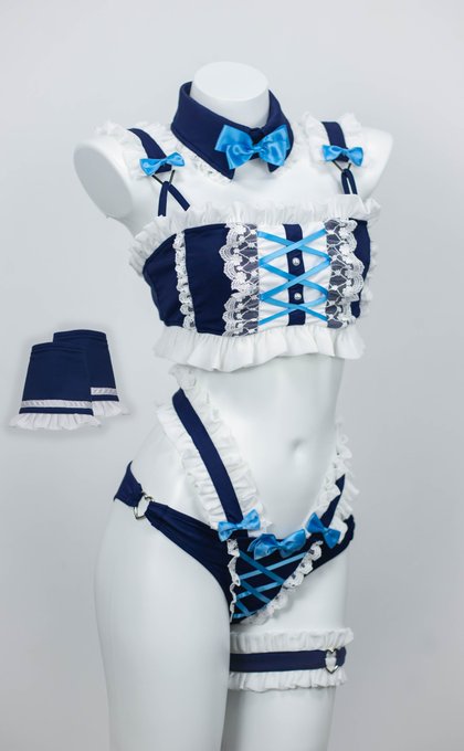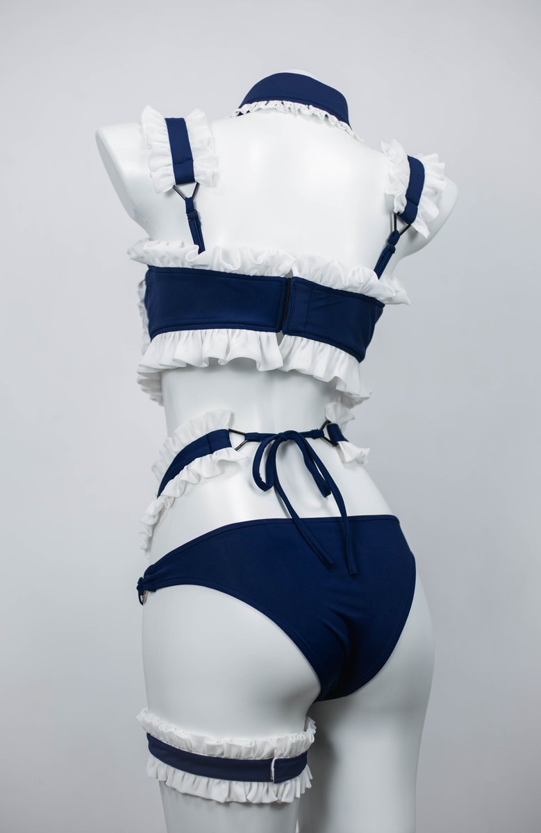 私と冬城ゆうさん@TRqB0wd9XzuHTZ6 がデザインした水着の商品化を始めました✨ サンプル画像を先行公開します! メイド服をイメージした、ブルー、ロリータ仕様のかわいい水着です^_^ この夏の準備はできていますか😇💦💦💦 ピンク色のセクシー仕様も制作中ですので、サンプルの公開をお楽しみに💨