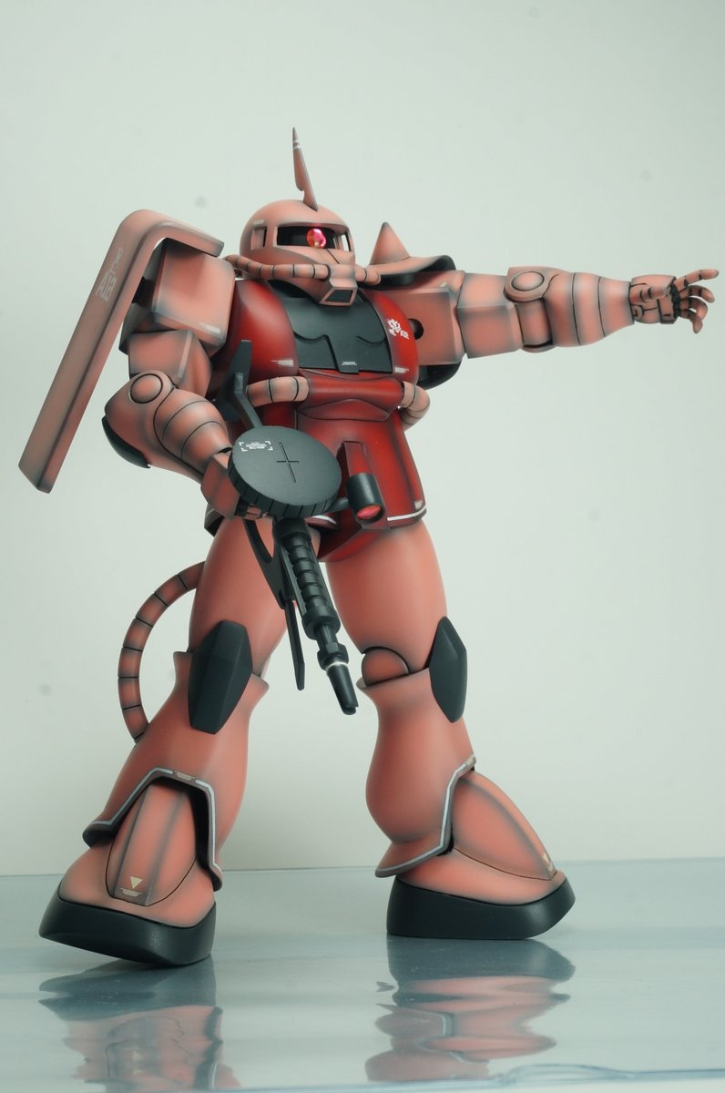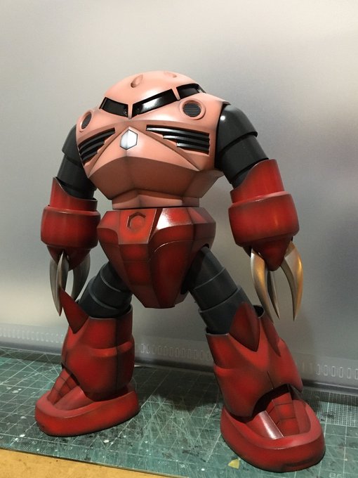 21 93 旧キット1/100シャアザク。完成...なんですが、デカール貼り中に不覚にも落として足の接着面に沿って割れ..超テンション下がって、デカール少な目で終了です😅まぁしょうがない #ガンプラ #旧キット 21/10/31 22:49