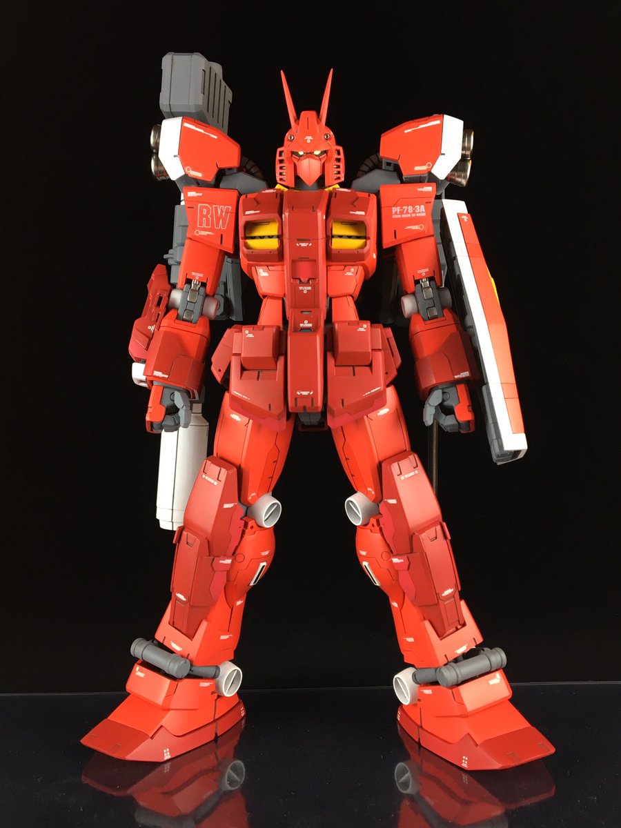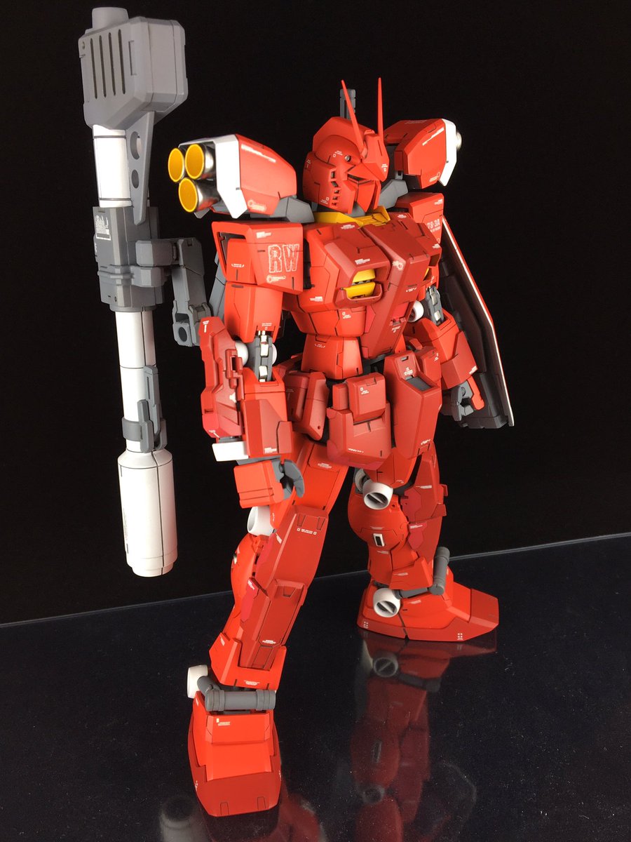 MGレッドウォーリア。元の脚は細くて好きになれなかったのでver.Kaガンダムと交換。膝パーツをあれこれ形状合わせ。盾はHGUCに変更。全体的にちょっとディテールUPなどなど、 #ガンプラ