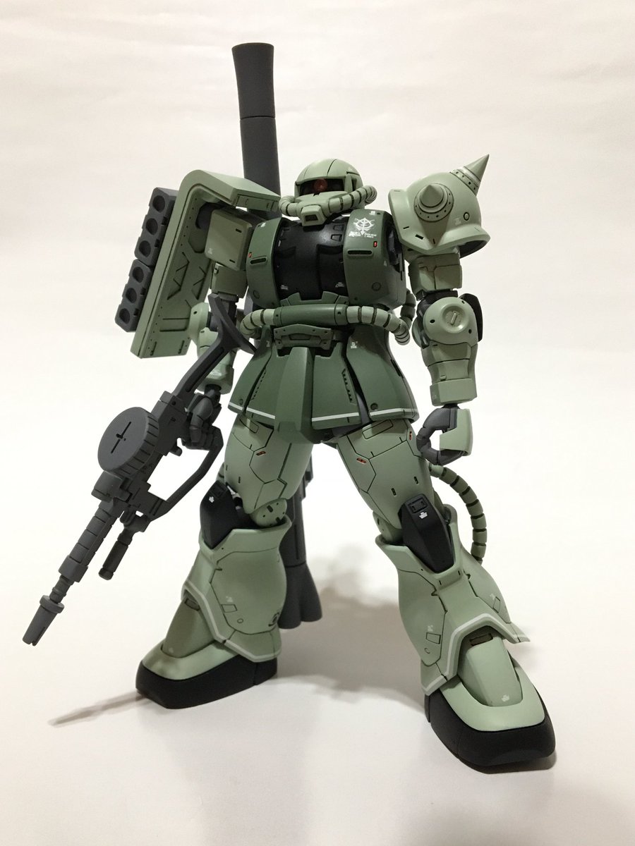 15 82 RE:ザク改。スパイクアーマーやスネの装甲薄々攻撃。パイプはモビルパイプ&スプリング等に変更。バズーカはドムから拝借。マシンガンを装備するとザク感が増します👍 発売してすぐ買ったけど、手首に悩んでて、ロボマニのおかげで完成にいたりました😆 #ポケットの中の戦争 #ガンプラ 21/11/26 22:48