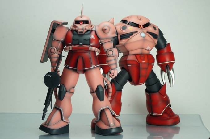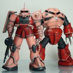シャアズゴックと。流れでゲルググ...はどうすっかねぇ.. #ガンプラ #旧キット