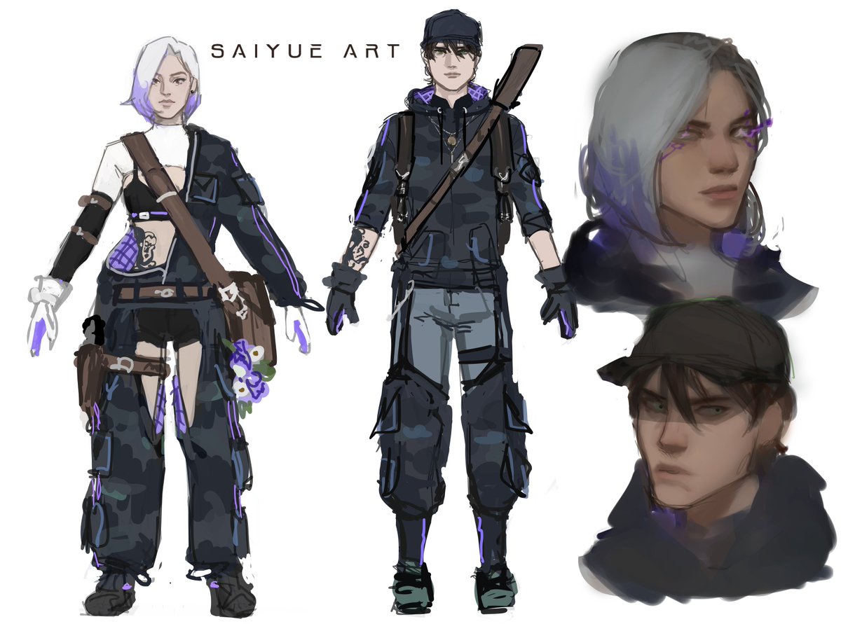 sketch do que eu imagino como o design dos irmãos florence na ordem paranormal como agentes eles tem uma tatuagem de um polvo com margaridas, pra simbolizar a barbara e o milo @beamom @g0ulaarte espero que gostem e adiram a ideia vou fz uma spash art deles tb 🫣 #osni #osnifanart