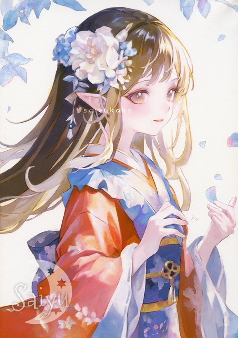 「花びらと戯れる エルフの少女」 アクリル絵の具、透明水彩など 🌟上下が切れてるのでタップ推奨 水彩画とデジタルの両方で、幻想的な題材のイラストを描いています #アナログ絵 #watercolor #創作イラスト #絵柄が好みって人にフォローされたい 🍎絵の具の豆知識 その 1 ⬇️ 🌟アクリル絵の具… twitter.com/i/web/status/1…