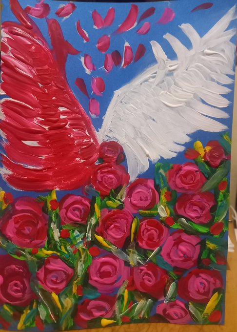 #みんなで楽しむTwitter展覧会 #絵 #アート🎨 #らくがき しゅみ #イラスト 天使 花をはこぶ