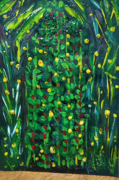 #みんなで楽しむTwitter展覧会 #絵 #アート🎨 #らくがき しゅみ #イラスト クリスマスツリー🎄ぽい 描いてみました!へぇ( ¯∀¯ ) おやすみ( ^_^)/😪