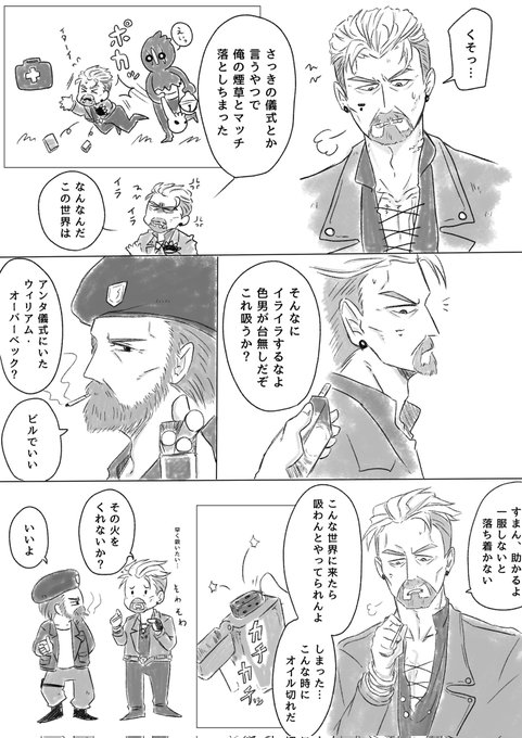 12 34 ジウ㌱と新鯖おじさんの話 霧を抜けるとそこは薔薇の森だった🌹 煙草全然吸えない🌟描きたかった😌 私の手にかかればイケメンもあっという間に残念な子に… #デドバ絵日記🏚 22/12/05 19:26