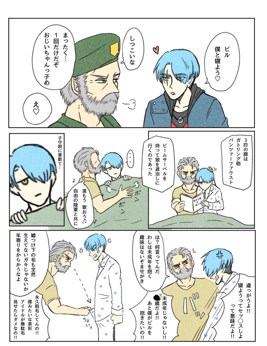 6 21 #デドバ絵日記🏚 本家からゾンビアーミー経由からのバイハに就活に来たビル爺と担当面接官ウェスカー。 後に霧の森で出会う。 23/01/22 05:56