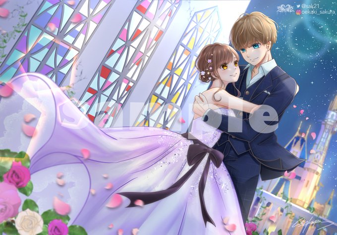 . テーマ / 結婚式 💍 ご依頼本当にありがとうございました𓈒𓏸໒꒱ #カップルイラスト #有償依頼 #イラスト依頼