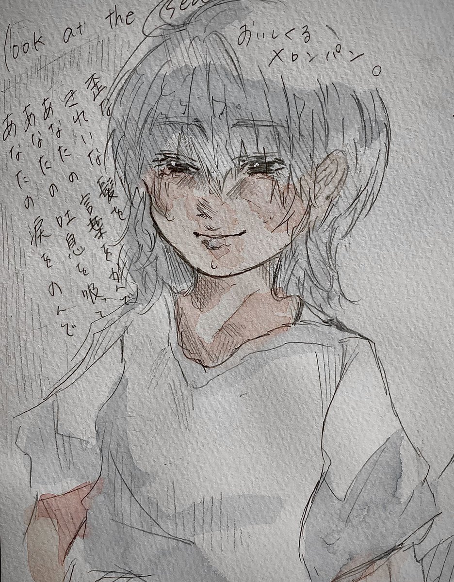 あなたの涙を飲んで あなたの吐息を吸って あなたの言葉を噛んでいたい #おいしくるメロンパン 。 #イラスト #アナログイラスト #アナログ #絵師さんと繋がりたい #絵描きさんと繋がたい #水彩画