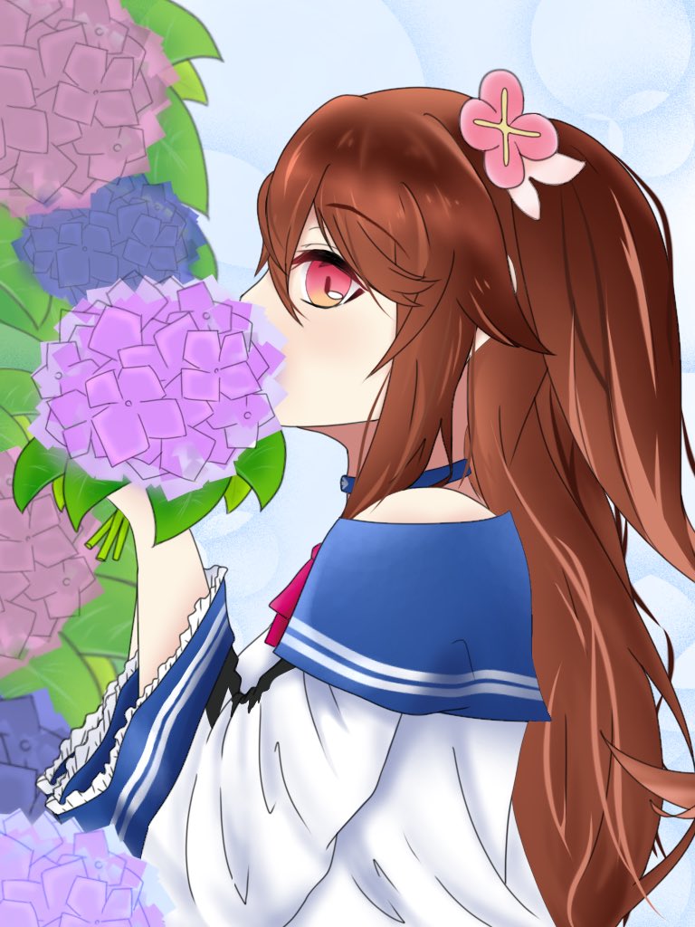 6月中に出来上がって良かった〜! 6月→梅雨→紫陽花という連想で アンブロシア女学苑にいらっしゃる氷高様に紫陽花もってる姿を撮影させていただいたので見てほしい() #アサルトリリィ_FA #アサルトリリィ
