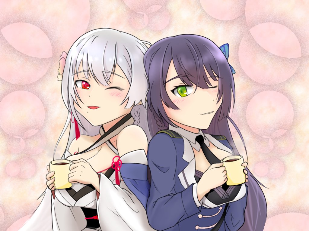 実はバレンタイン当日に描き終えてた 「こんな感じで御二人でホットココアかホットチョコレートかを飲んでたらな〜」っていうただの妄想絵です()() (手袋?グローブ?は休憩中故に外しております)← #アサルトリリィ_FA #アサルトリリィ