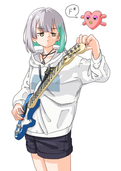 かのんちゃんとフェンダーのジャズベとベースマンの絵を描きました ジャズベは赤に限る かのんちゃんは兎年だからという理由でバニー服着てくれそう #かなでかのんアート