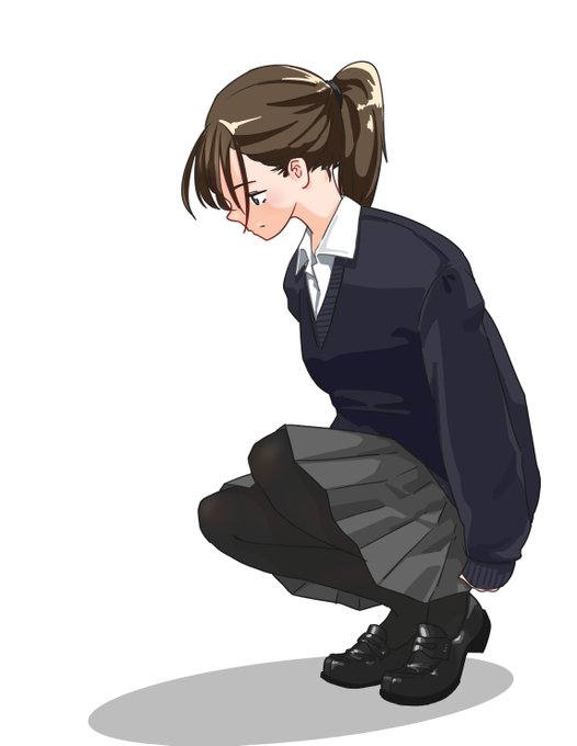 16 98 しゃがむ女子高生 久しぶりに絵を描きました 22/12/11 22:16