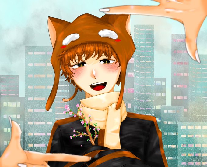 0 1 葉桜といちはちさん🌸 マフラーって難しい… #絵1857 #bintrollFA 23/04/16 19:41