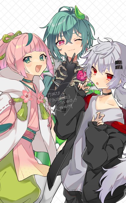 skeb納品です!おにくのお三方を描かせていただきました✨みんなでねこちゃんポーズ🐱🐱🐱 リクエスト誠にありがとうございました🥳 skeb.jp/@sakamoto0214/… #Skeb #Commission @skeb_jpより