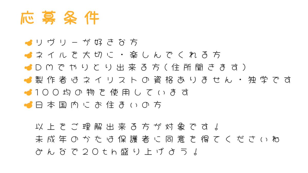 🎉20周年おめでとう✨🎁✨プレゼント企画🎉 モチーフネイルを抽選でプレゼントします 画像をよく読み、ご参加ください 参加方法:このツイートをRT(フォロー任意 鍵・取引垢などはやめてください) 抽選方法:あたれら 期間:今日から一週間(6/3) 当選人数:現在2(※) #リヴリーファンアート