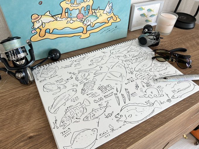 2 10 ライブ配信で描きました🎨 さかなと釣り方を描いてる斬新なぬりえです😂ほしい方はこちらまで🔻 23/04/16 10:27