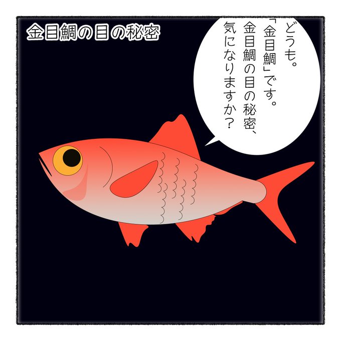 金目鯛の目の秘密 金目鯛は暗い海の中で少ない光を有効活用して餌を探します🐟 sakanacity.com サカナシティは様々な魚の生態や釣り方、漫画を掲載中です🐟★ ぜひ、覗いてみてください♪ #釣り好きな人と繋がりたい #漫画が読めるハッシュタグ #さかな #4コママンガ