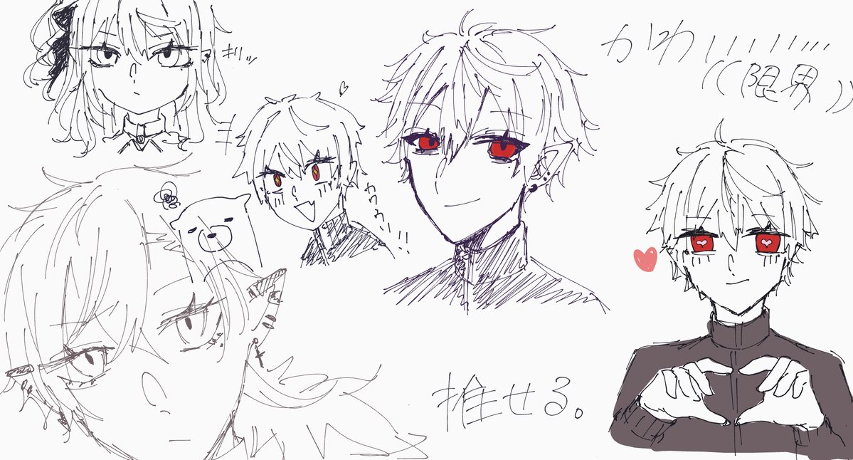 ぴくるーのランダムで生まれた子達 作った画像参考にちょっと改変したもの 左画像のセンターは多分最強 顔隠してる系は焦ると絶対に可愛いです(断言)けれど絶対つおい #絵描きさんと繋がりたい #創作 #落描き