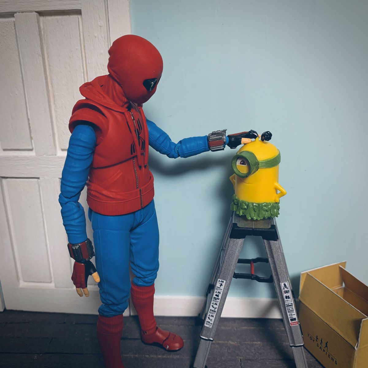 「部屋っぽくなってきたけど椅子は?」 すまん、まだ作ってない... #オモ写 #スパイダーマン