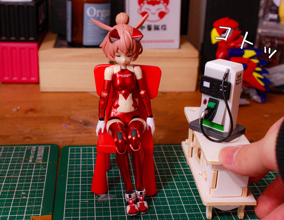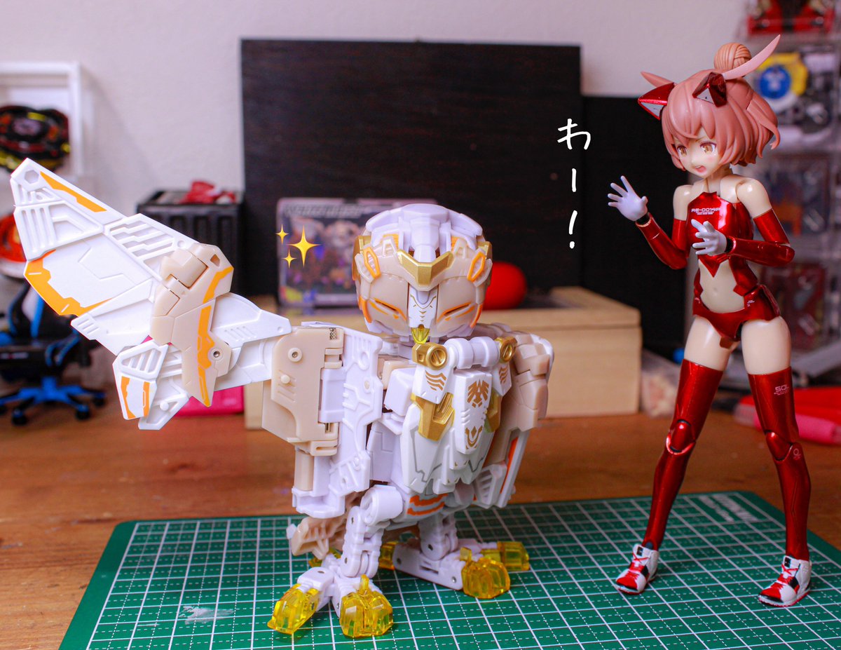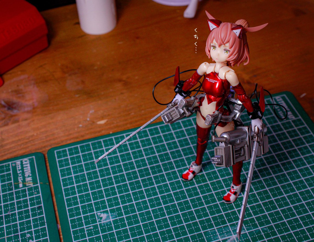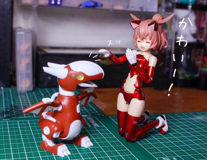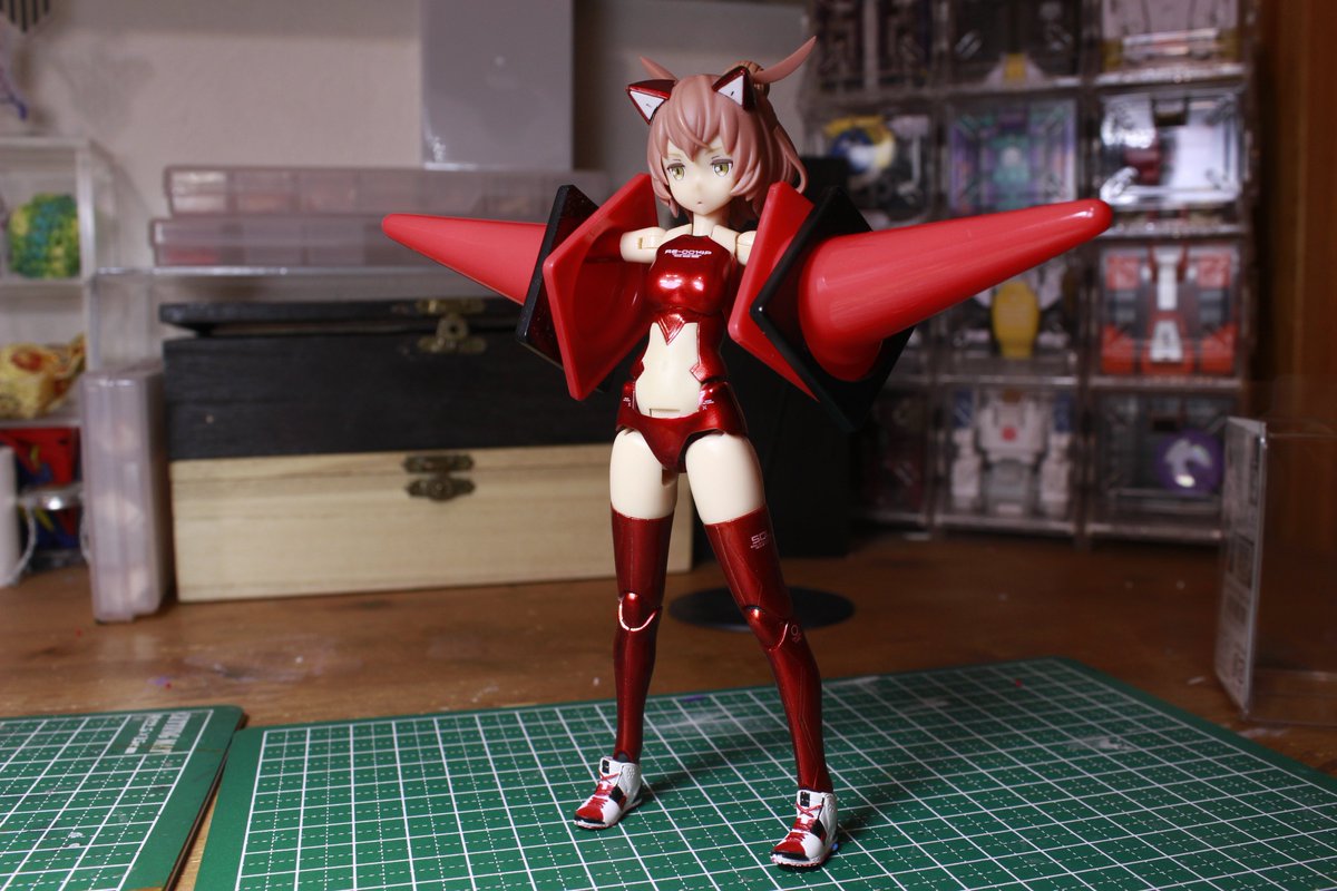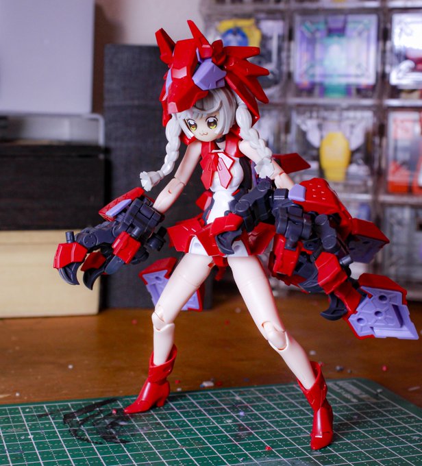 メガミデバイス 朱羅カスタム 銃槍兵 完成しました! 近距離~中距離専用。機動力の高そうな朱羅素体と最小限の武装で攻撃を回避しつつ高火力で殴れたらいいなってメガミです。 リプに写真続きます。 #メガミデバイス