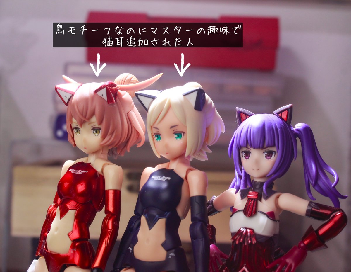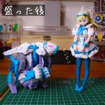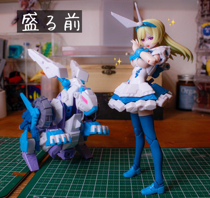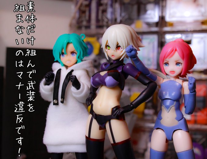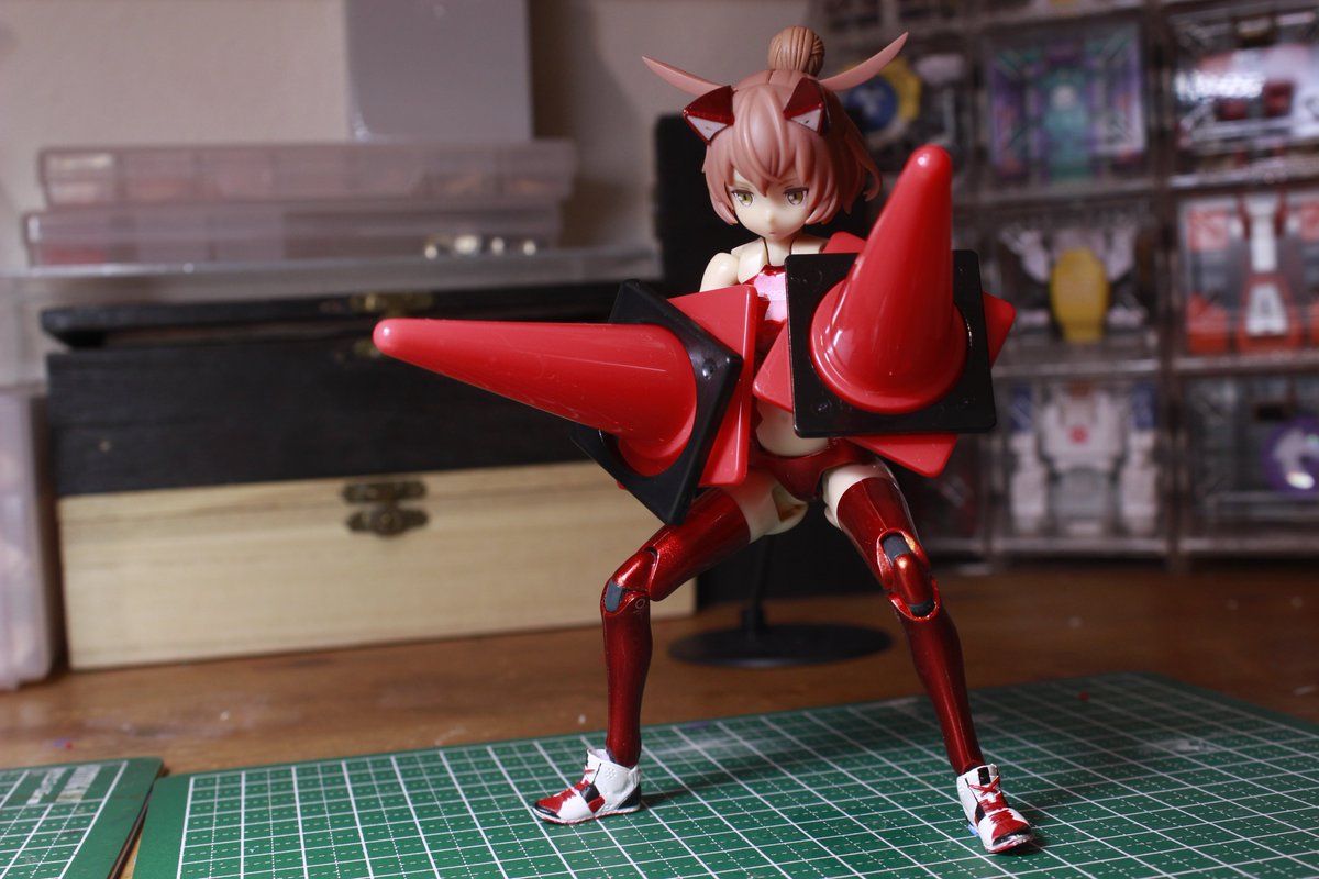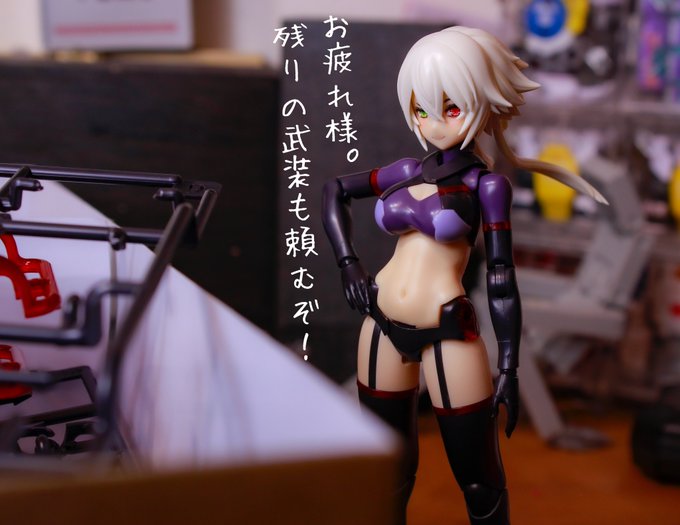 148 487 メガミデバイス 朱羅カスタム 銃槍兵 完成しました! 近距離~中距離専用。機動力の高そうな朱羅素体と最小限の武装で攻撃を回避しつつ高火力で殴れたらいいなってメガミです。 リプに写真続きます。 #メガミデバイス 23/05/05 11:52