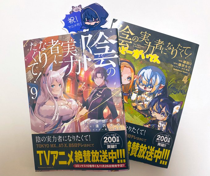 「陰の実力者になりたくて!」9巻、私の方にも見本届きました!シリーズ累計200万部!すごい!!🥳 電子もBOOK☆WALKERではセール中みたいなので、アニメで気になった方は是非試し読みから! comic-walker.com/contents/detai…