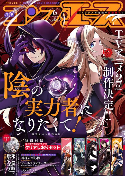 本日発売のコンプエース6月号に「陰の実力者になりたくて!」52話掲載しております!また表紙を担当させて頂きました!付録にはオシャレなクリアしおり付き📕✨ 来月発売のコミックス11巻もよろしくお願いいたします! kadokawa.co.jp/product/322301…