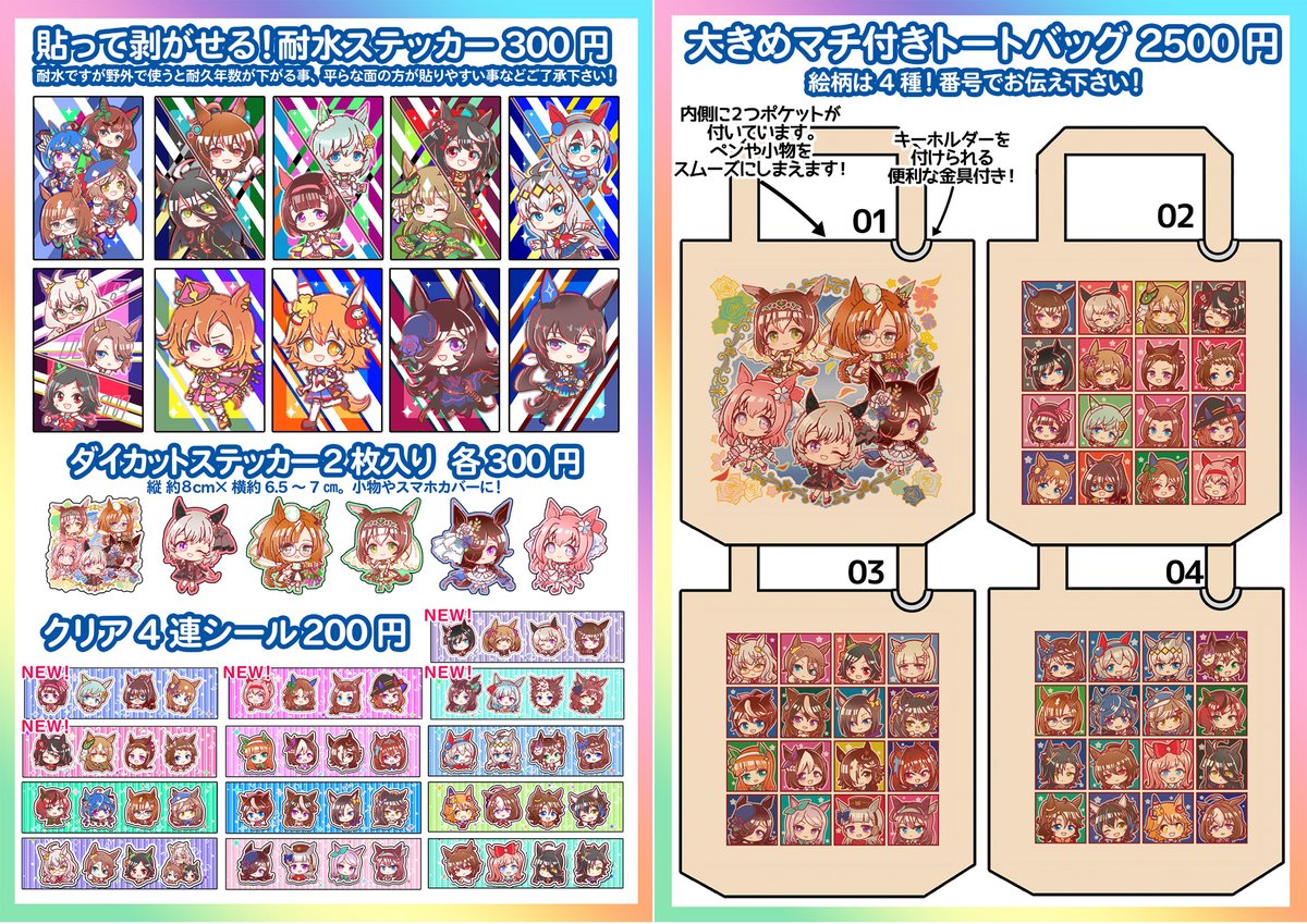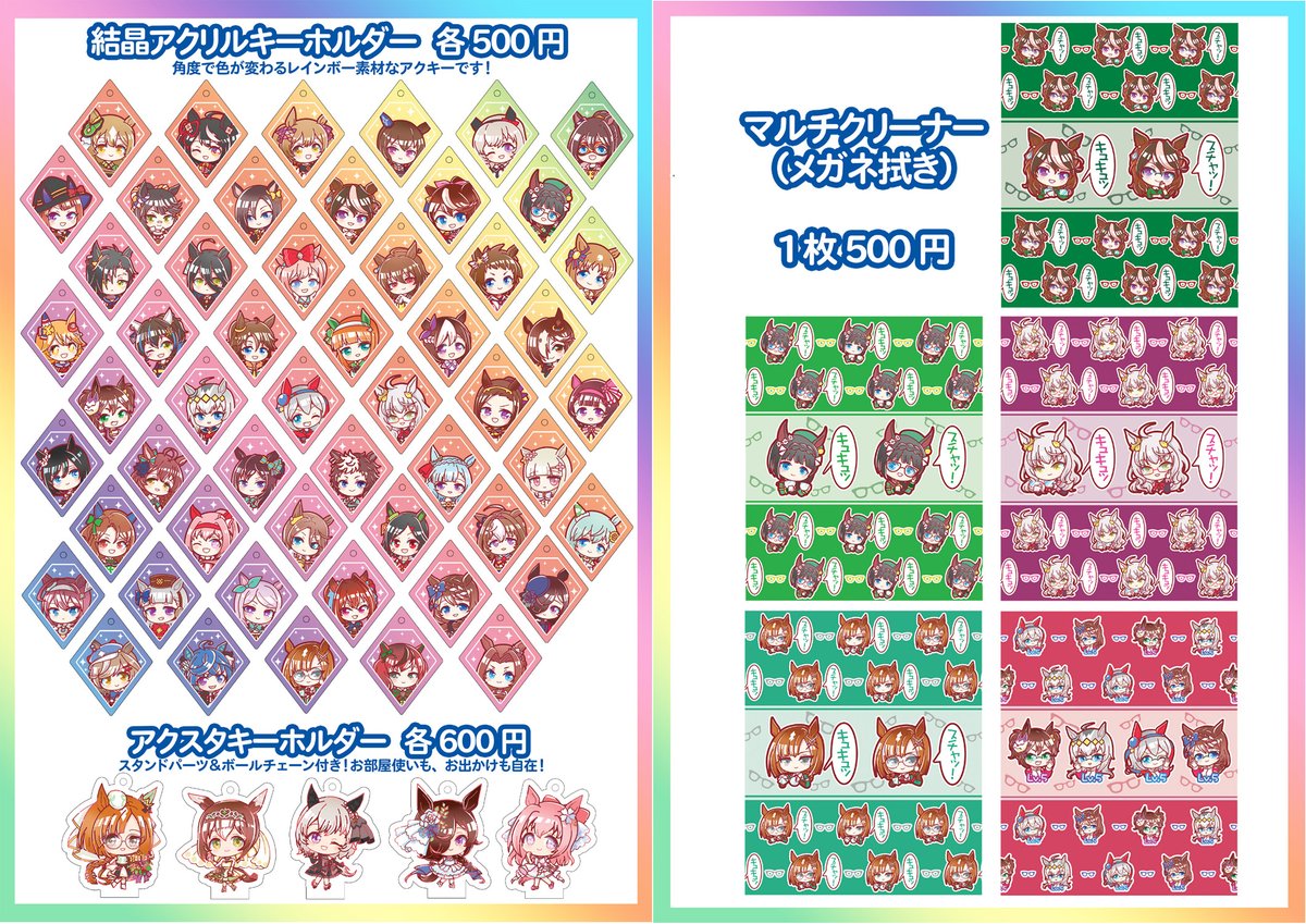 2月26日プリティーステークス22Rの坂の隅(ウマ15)のお品書きです!新刊、アクスタキーホルダー、手描き色紙が新作です!本はオールキャラ、アクリルはライス&ブルボン、オグタマクリークなど新規に描きました。是非お気軽に見に来てくださいー! #プリステ22R #プリティーステークス22R